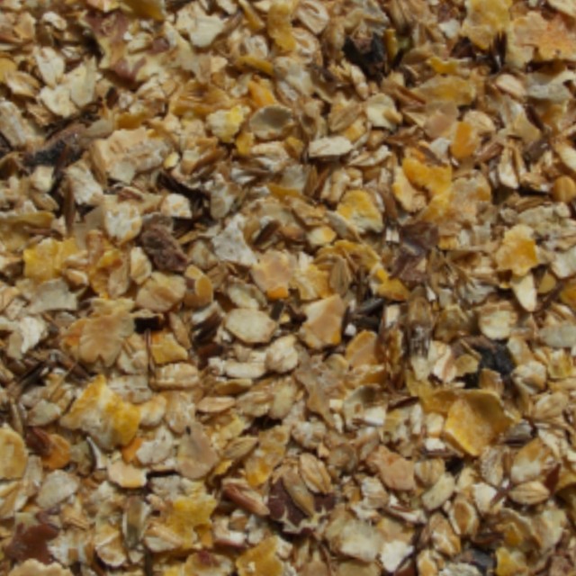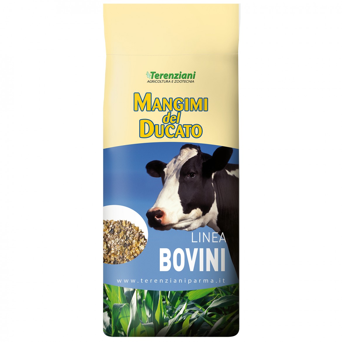 Granturco schiacciato, erba medica, crusca grano tenero, orzo schiacciato, soia schiacciata, favino schiacciato, pisello schiacciato, panello di germe di granturco, carrube, melasso di canna da zucchero, integrazione vitaminica e sali minerali.