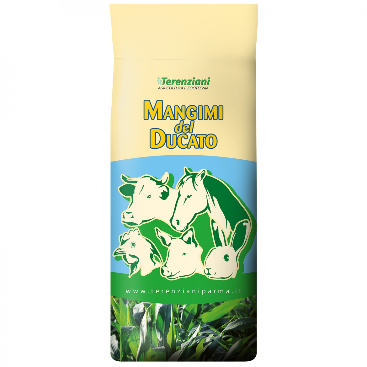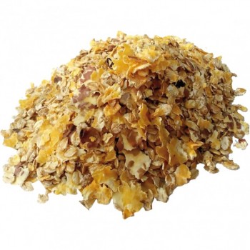 Granturco schiacciato, orzo schiacciato, pisello proteico schiacciato, favino schiacciato.